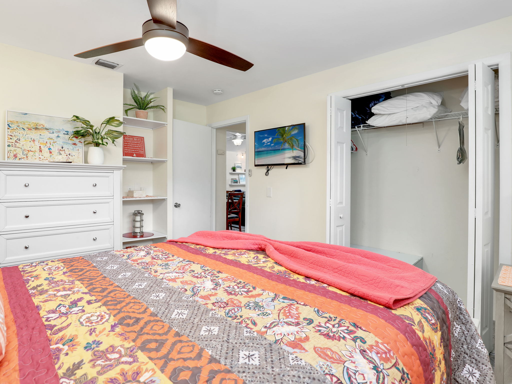 Additional Amenities: High-speed WiFi throughout the home Fully equipped kitchen: Fridge, oven, stove, microwave, popcorn maker, and a coffee station Located in a quiet cul-de-sac ensuring privacy and peace Two security cameras: Ring camera at the front door and another for the driveway (non-recording, monitored only when the property is unoccupied) Beach chairs, umbrellas, and four bicycles available for use